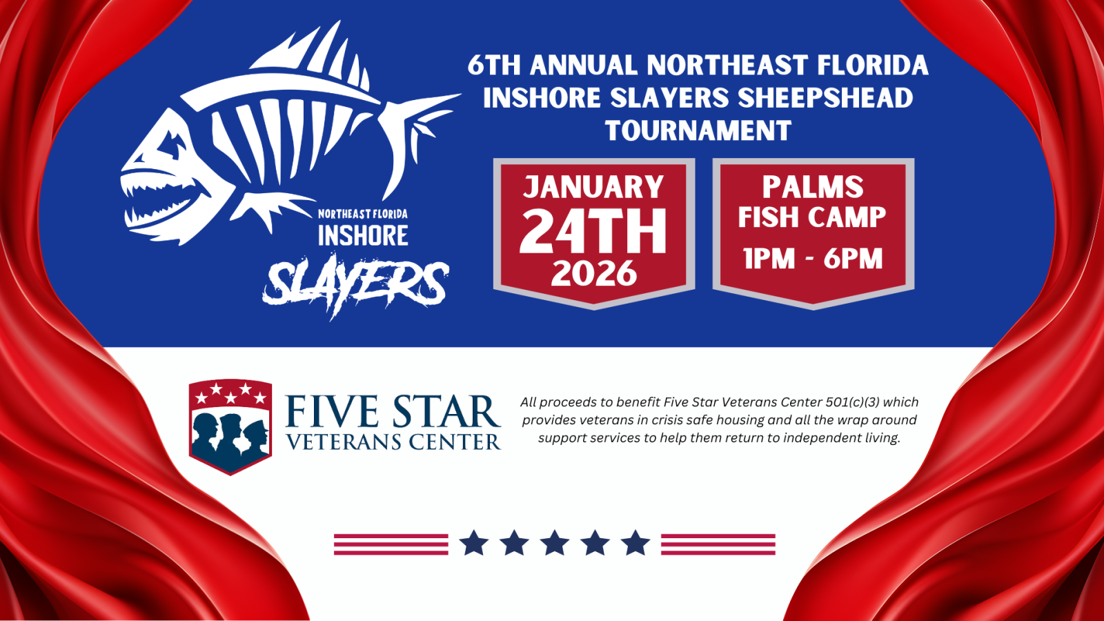 We invite you to participate in the 6th Annual Northeast Florida Inshore Slayers Sheepshead Fishing Tournament hosted at The Palms Fish Camp and Restaurant on January 24th, 2026. (Yep, we're changing it up!)